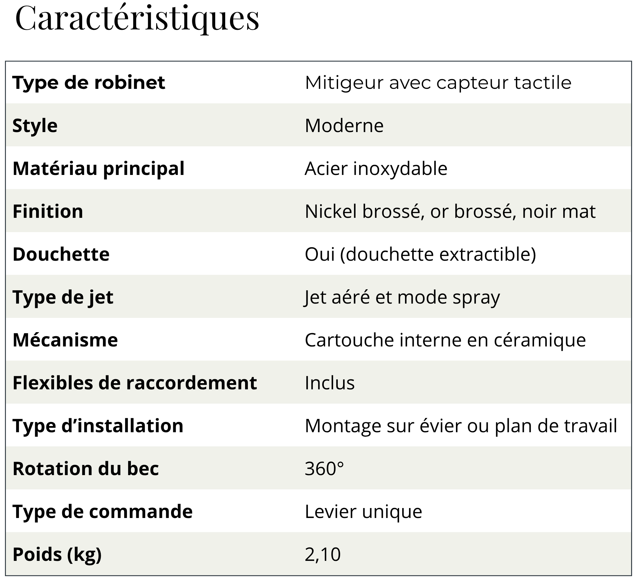 Oui. Nos robinets sont fabriqués en acier inoxydable ou laiton, des matériaux reconnus pour leur résistance à la corrosion, au calcaire et à l’usure quotidienne.